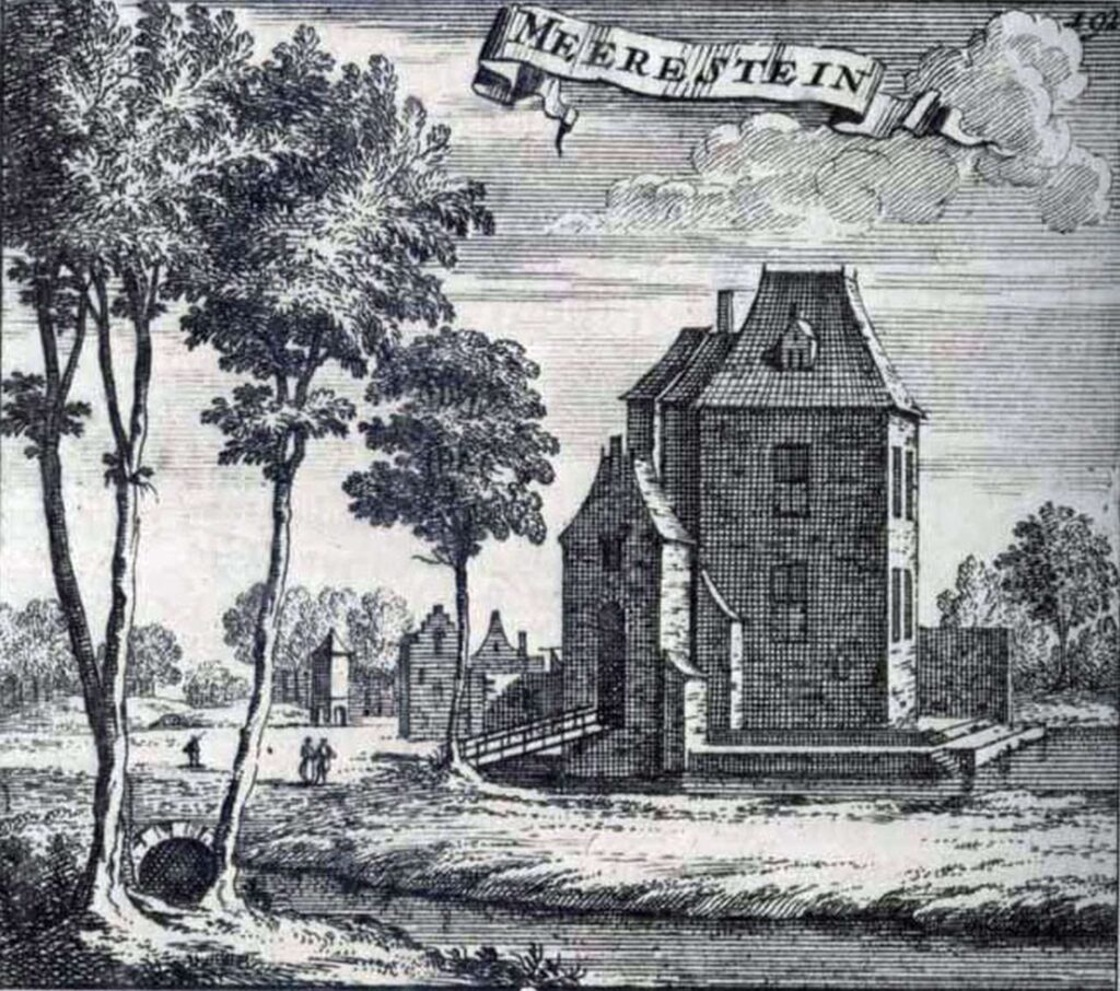 Vele generaties Van Egmond van Merestein hebben er gewoond tot hun bezittingen in de Spaanse tijd verbeurd werden verklaard en verwoest. Kort daarna stief de familie Van Egmond van Merestein uit. Tussen 1600 en 1640 vindt (gedeeltelijk) herstel plaats wat blijkt uit het toenemend aantal schoorstenen waarvoor schoorsteengeld (belasting) betaald moest worden. De gravure uit ca. 1640 van R. Roghman toont een flinke vierkante woontoren met aanbouw en een vaste brug over de gracht. Het geheel werd echter na verkoop in 1690 aan Jacob Boreel weer afgebroken.